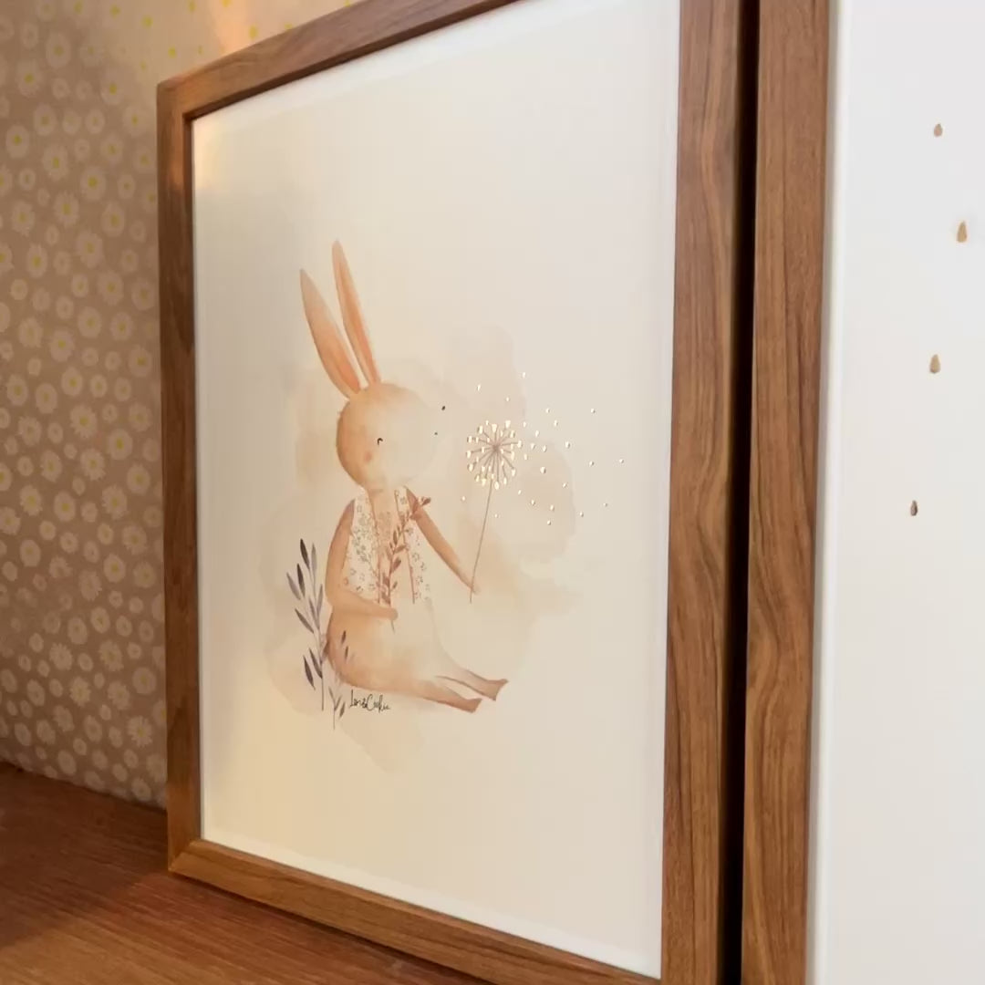 Goudfolie kinderkamer poster set van 3: Mia Konijn, Bobbie Gans & Vinnie Vogel - A3 & A4