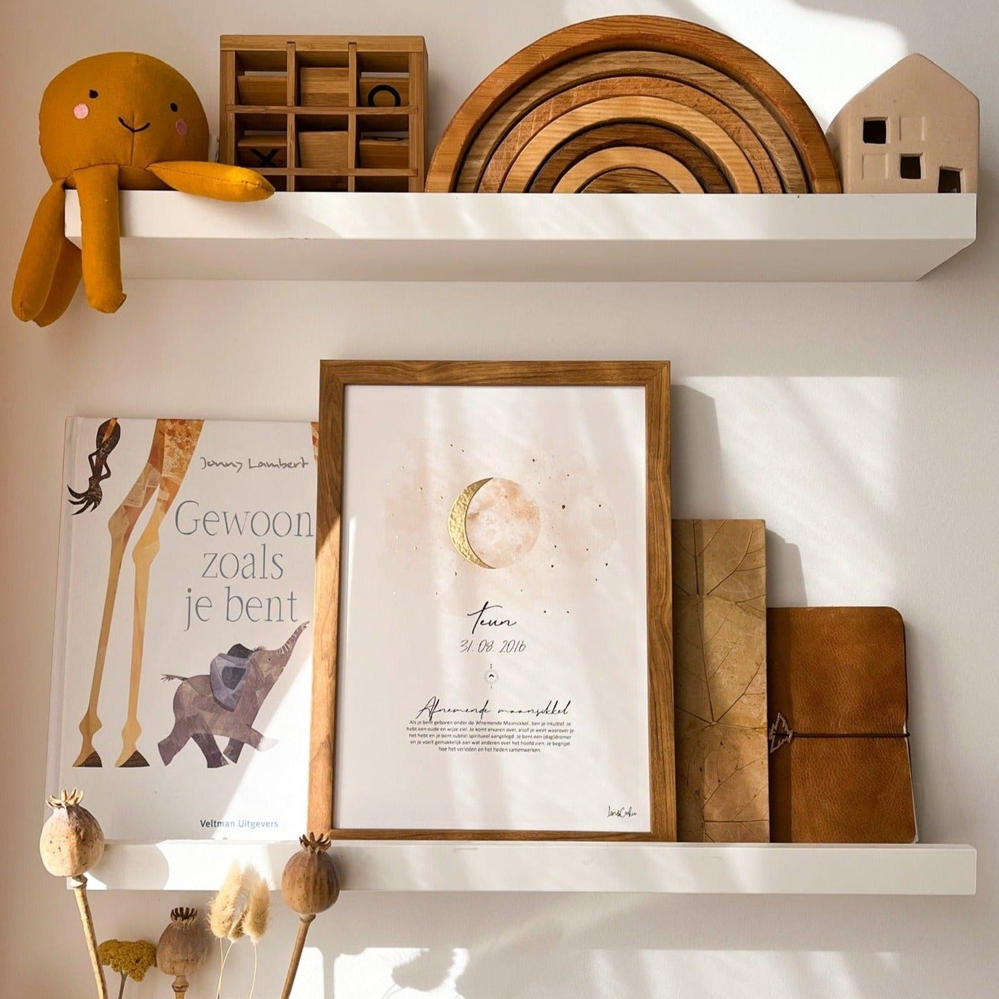 Met hun warme beige tinten en glinsterende goudfolie maan & sterren, zijn onze gepersonaliseerde geboorte maanposters meer dan alleen een poster. Ze zijn een uniek en betekenisvol (kraam- of geboorte)cadeau voor jezelf of voor (aanstaande) ouders in jouw omgeving. Een prachtige herinnering aan één van de mooiste momenten in het leven 🤎. Combineer met onze aquarel bosdieren posters voor een mooi geheel op jouw baby- of kinderkamertje. Goed om te weten: de kleuren kunnen iets afwijken van de weergave op je scherm en kunnen per drukserie licht verschillen, omdat we in kleine oplages drukken.
